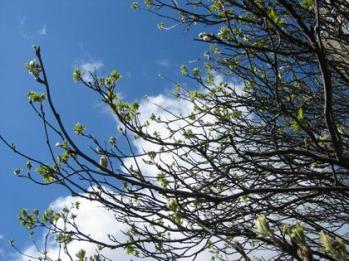 英國時間 2005-05-02 星期一 22:36 風撫過光禿的枝幹, 留下一絲冬天過後緊緊殘留的溫度, 季節交接時期的目擊,滿地水仙鮮綠黃嫩的佔滿視野。 於是預告綠芽的粉墨登場...