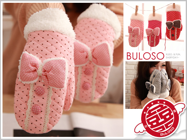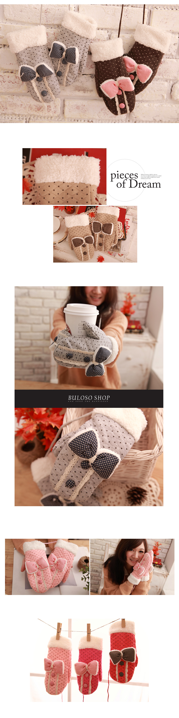 ?後來我聽我朋友建議,可以到網路購物買《不囉唆》【Y256698】 (不挑色)7色韓版點點立體蝴蝶結包指手套 保暖鋪棉禦寒手套
