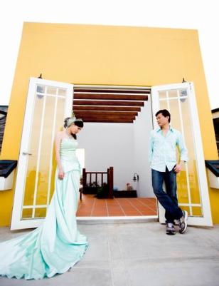 圖片說明:這套綠色是我們在澎湖拍照最後一套禮服!拍攝地點是:夏豔民宿,是攝影師前一天商借的.(因為他們住那ㄦ)...