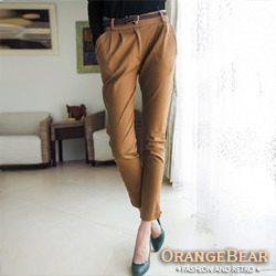 【OrangeBear】超值附皮帶彈性腰圍窄管褲‧共三色