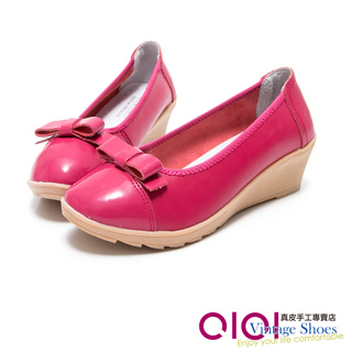 你一定要來看看【0101】真皮手工系列-舒適滿點雙拼真皮楔型鞋(桃紅)~~