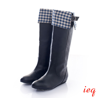 推薦開箱-【ieq】2way格紋布翻領飾帶小圓尖楦素面長靴(亮黑)