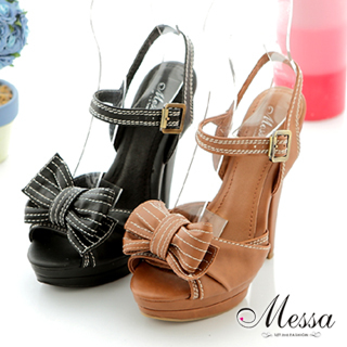 最近在網拍看到(Messa)復古蝴蝶結羊皮極高高跟涼鞋-兩色,