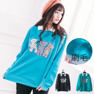 好物推薦~【衣心衣意中大尺碼】卡哇伊小熊繡花刷毛上衣(黑-水藍A5040)