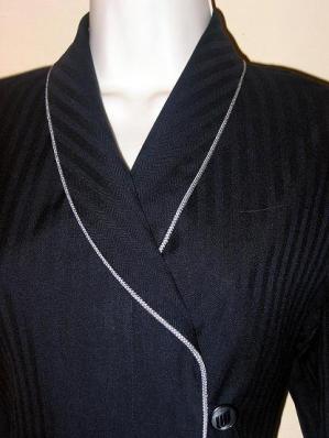 洋裝的設計重點是類似華航大衣的絲瓜領, 加上銀色滾邊~