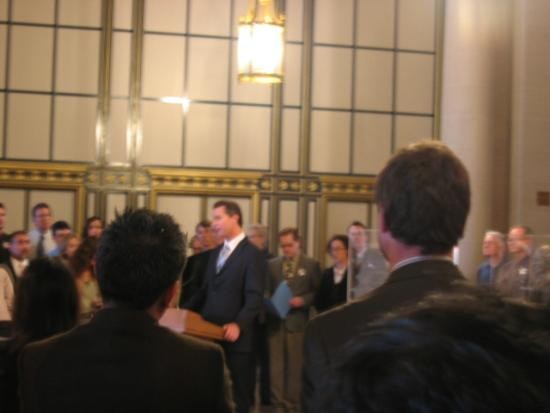 一進門, 赫然看見電視上經常看見的市長 活生生地站在桌子旁拿點心吃!!?!?