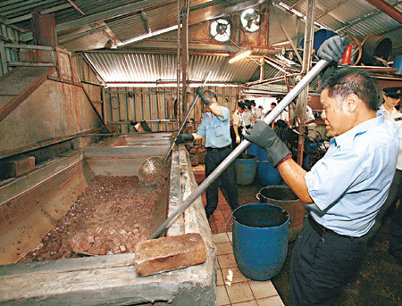 (星島日報 報道)牛池灣一個運作近三十年的地下食物工場,以牛血冒充豬紅,多年來供應東九龍的街市和熟食檔,蒙蔽廣大食客;《東周刊》接獲铫報跟進採訪,而食環署 亦接獲投訴追查三星期,昨採取突擊行動,連同毗鄰的肉丸非法食物工場一起搗破,拘捕兩男女,檢獲五百公斤牛血「豬紅」及二百公斤肉丸等食品。