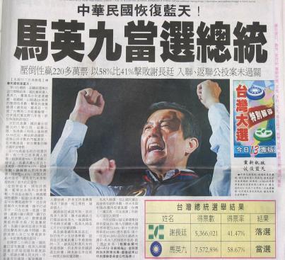 馬英九已經當選中華民國的總統啦!!!!!!!!!!!