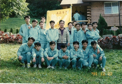 傳說中最強的聖鬥士~處女座 ~(公民訓練-日月潭 光華島 ...忘了,第一排右下..蹲著勾我肩的就是林仔 ) ...
