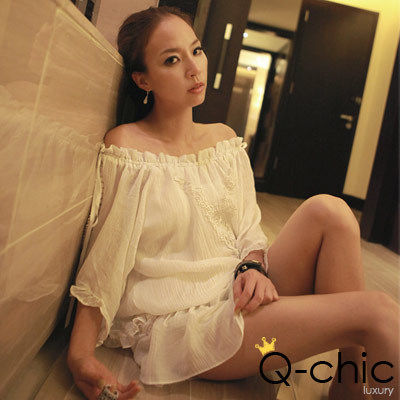 [夏日穿搭]【Q-chic】清新民族風一字寬領上衣 (白色)穿搭技巧教學!