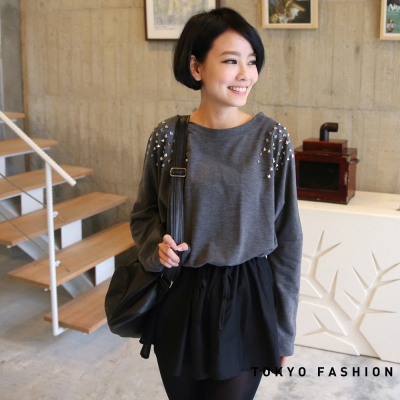[性感穿搭篇!]【東京著衣】鉚釘棉質拼接抽繩短洋裝(共二色)穿搭技巧教學