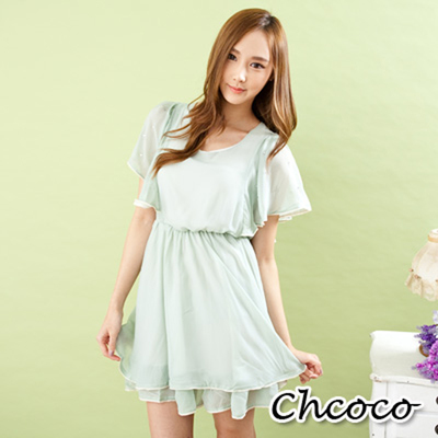 最新分享【Chcoco】心動感應‧水鑽雪紡層次感洋裝(綠色)