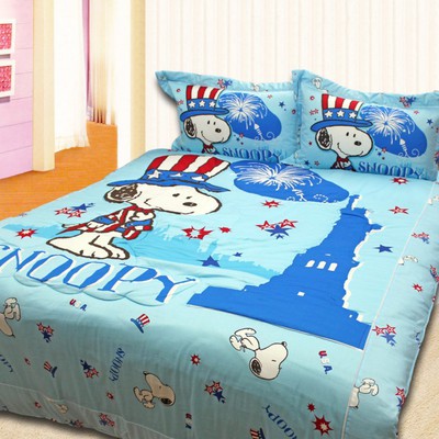 溫馨天使推薦@【SNOOPY】史努比燦爛色彩藍(頂級精梳棉單人三件式舖棉冬包兩用被組)ptt討論區評價