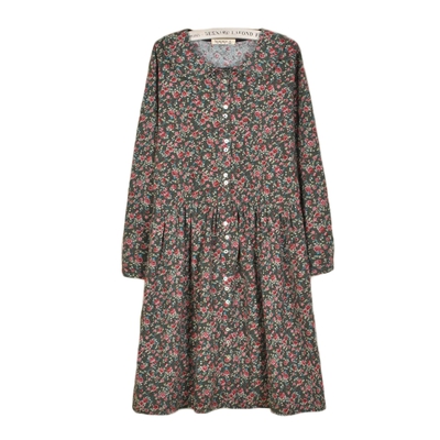 繽紛碎花長袖棉麻洋裝(共二色)Fei Fei