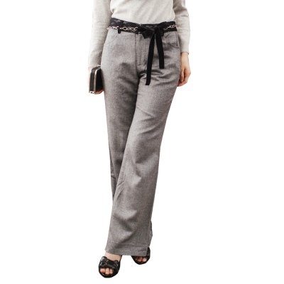 秋冬必備毛料長褲添加蕾絲的點綴,腰際繫上絨布的蝴蝶結,展現女性柔美的一面!