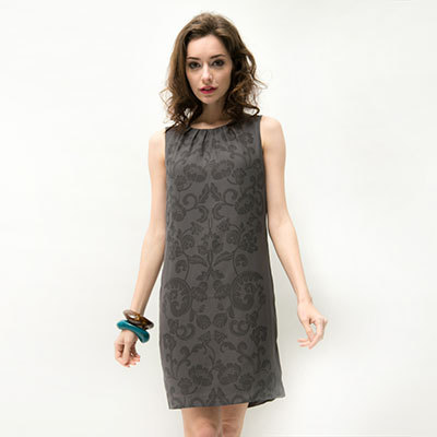 瑞典H&M 胸前皺摺設計優雅印花洋裝(氣質灰)