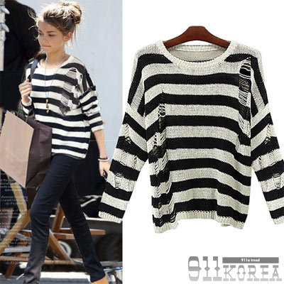 【911 korea】破損魔力˙橫紋破損感針織上衣
