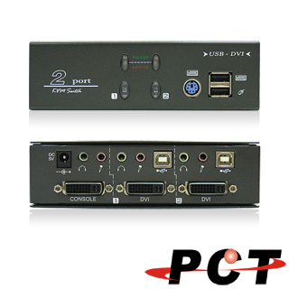 【PCT MP2711】 2 進 1 出 DVI USB KVM 電子式多電腦切換器(含音頻 + 麥克風)