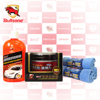 1.品名:頂級金鑽蠟*1?? 特性:使用純淨的100%天然巴西棕櫚蠟,不但擁有卓越光澤性能,且華麗色澤提升汽車的品格,??????????? 含有微小的合型蠟和SPS成分,感覺像用液體蠟般的柔軟及便利性。?? 使用方法 :清洗車體表面外觀,將其水分擦乾,再用內附的海綿,以畫圓的方式均勻塗抹車身表面,?????????????????? 漆面乾燥變成白色後,以軟布擦拭。?? 容量:260g?? 產地:韓國原裝進口?? 官網:www.bullsone.tw2.品名:晶亮橙子洗車精*1?? 特性:此乃高濃縮液,含有天然橙子精油,並可達到強力的去污清洗功能,簡單易用,同時具有保護??????????? 漆面光澤的效果。?? 使用方法:建議使用4L的水混合30ml的濃縮液。?? 容量:500ml?? 產地:韓國原裝進口3.品名:G2000 超細纖維布*3?? 尺寸規格:30x30CM?? 材質:100% Microfiber極超細纖維?? 使用方法:請用一般中性清潔劑清洗使用,使用後自然陰乾即可。?? 適用範圍:汽車鈑金及儀表板/廚房/家電/美容/浴室/家具/寵物/吸汗毛巾..等全適用。?? 注意事項:?????????????? 1.為避免破壞纖維組織,請勿使用冷洗精或柔軟精。?????????????? 2.深色初期洗滌後,會產生少許脫色,屬正常現象。?????????????? 3.使用本品後需清潔,以免灰塵刮傷物體表面。?? 產地:台灣製造