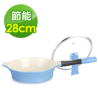 【婦樂透】超級節能不沾瓷晶深煎鍋28cm(地中海藍)