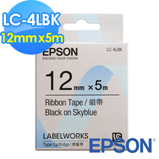 【EPSON】標籤機色帶 LC-4LBK(緞帶天空藍底黑字/12mm)