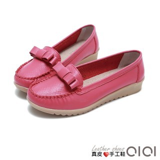 【0101】真皮手工系列-特殊壓紋蝴蝶結真皮莫卡辛便鞋(桃紅)PChome線上購物
