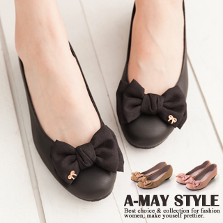 【A-May Style 艾美時尚】雙蝴蝶結輕楔型包鞋(黑)