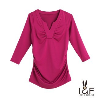[2015穿搭推薦]【INF全尺碼】V領素面抓皺七分袖上衣(棗紅 02433)詳細介紹如下:(複製網址,貼上瀏覽器)