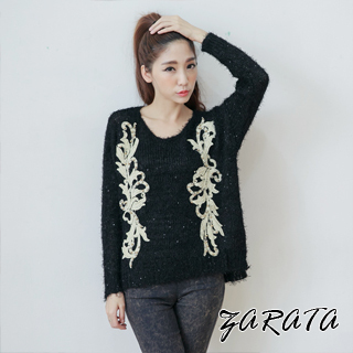 [2015穿搭推薦]【ZARATA】V領圖騰串珠毛海針織上衣(黑色)好穿嗎詳細介紹如下:(複製網址,貼上瀏覽器)