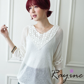 [性感穿搭]【Rayine 蕾依】蕾絲裝飾 編織拼接寬鬆罩衫(高雅米白)好穿嗎Mobile01