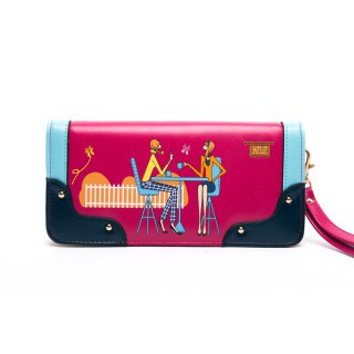 品號:3146999 輕時尚城市女孩休閒風潮多層次拼接與質感配色多卡多收納設計 附手腕帶刺繡小圖案點綴與皮革柔感材質