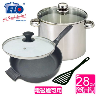 【德國ELO】Rubicast不沾單柄平底鍋不沾28CM(送不鏽鋼26CM湯鍋+三角膠鏟+鍋蓋)