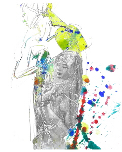 在那間三合一工作室中,某天走進了一位日本女交換生,她拖著一口粉紅皮箱,染了一頭桃紅與紫相間的短髮,著迷你裙高筒靴,這麼時髦如卡漫中走出的女子專攻的竟是古典絹彩畫,在她櫥櫃之中的顏料比他的人還要精彩許多,上百罐的色料一字排開宛如一曲維瓦第的四季協奏曲。