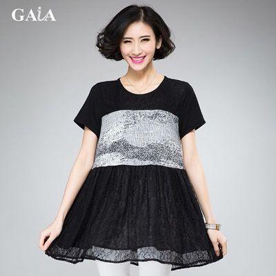 [推薦開箱]【GAIA】中大尺碼麥穗雪紡印花拼接蕾絲洋裝-長版上衣(XL-3XL)