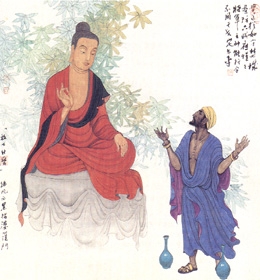 佛陀住世時,有一位名叫黑指的婆羅門來到佛前,運用神通,兩手拿了兩個花瓶,前來獻佛。 佛對黑指婆羅門說:「放下!」 婆羅門把他左手拿的那個花瓶放下。 佛陀又說:「放下!」 婆羅門又把他右手拿的那...