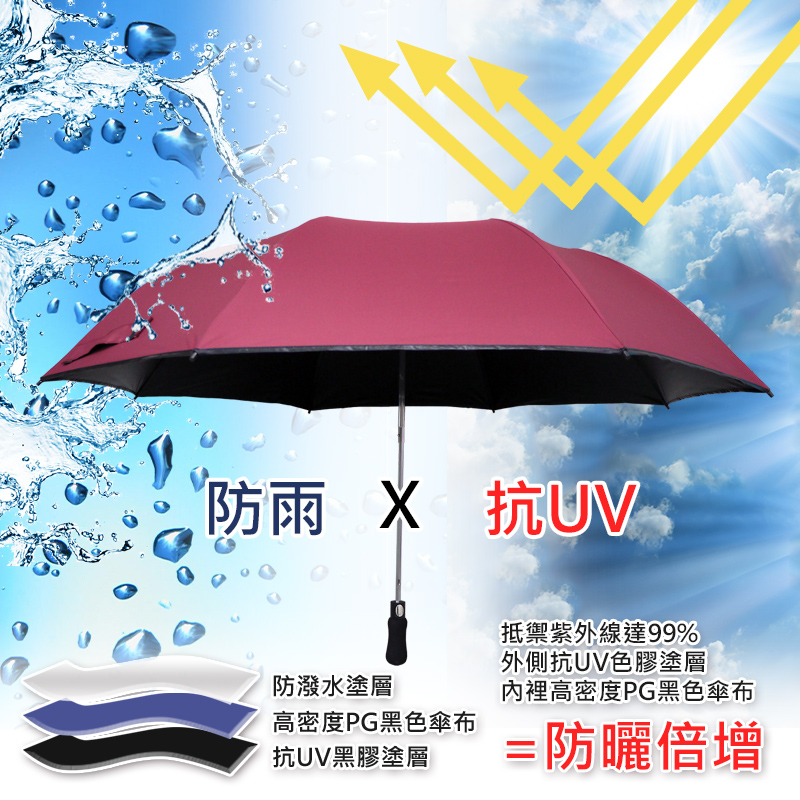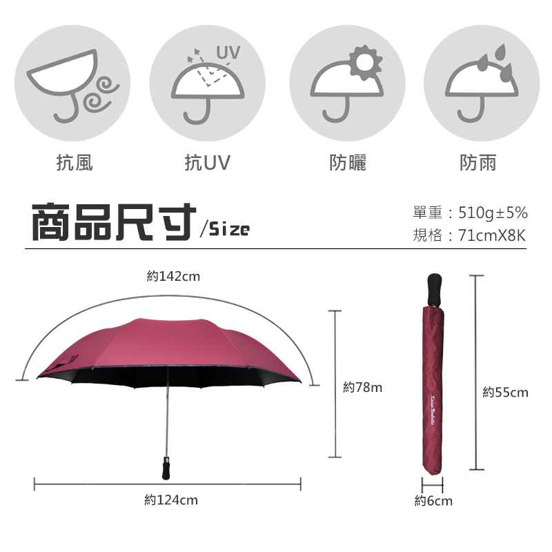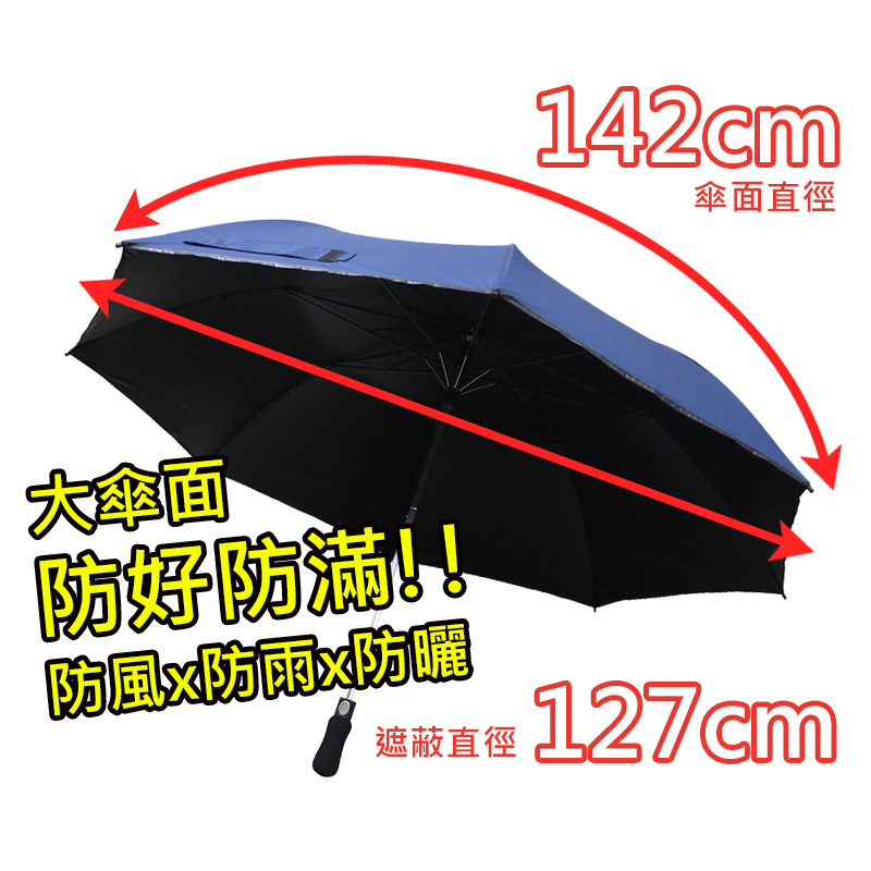 最新款式,市售超大傘面可多人撐,傘面黑膠塗層防曬效果超優,二折自動開傘使用方便,防風防雨都適用!