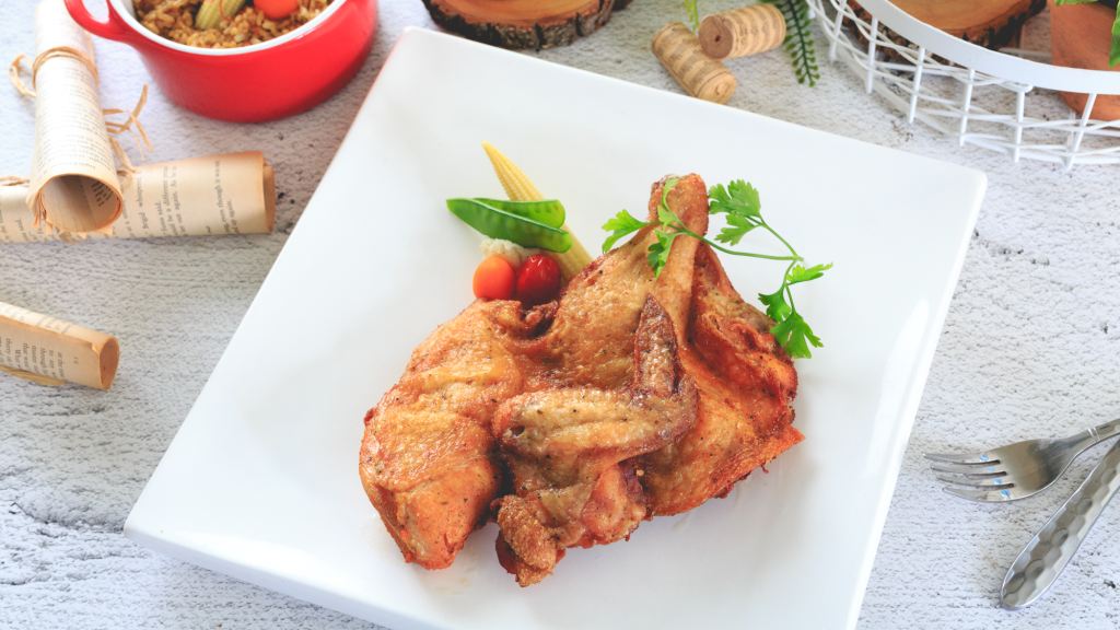 爐烤保留住雞肉的多汁與鮮嫩口感,皮焦香金黃,看著口水直流。