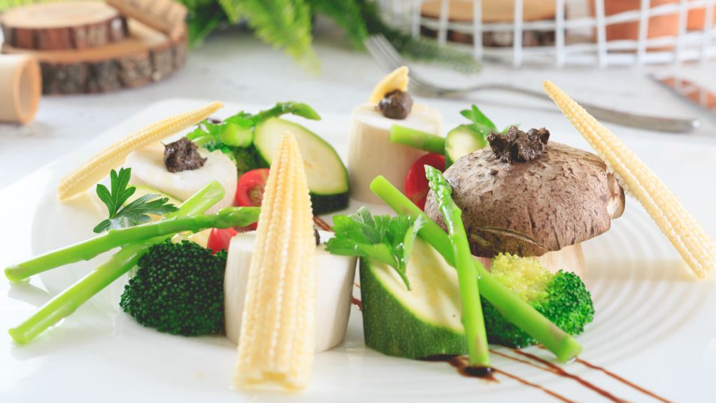香煎蘆筍杏鮑菇佐陳年醋膏搭松露飯
