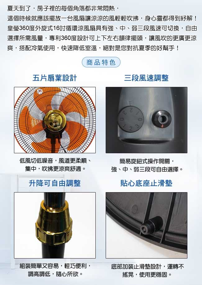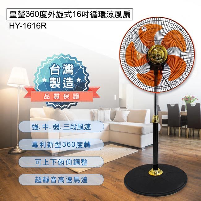 【皇瑩】360度外旋式16吋循環涼電風扇 HY-1616R 的簡介就寫在下面