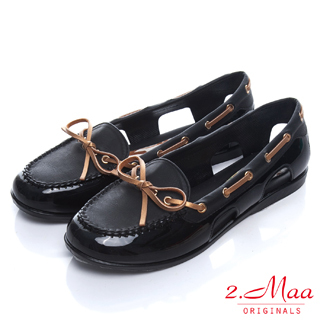 推薦momo熱銷商品【2.Maa】簍空防滑清爽休閒特色莫卡辛(黑)