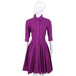 MOSCHINO 紫色抓褶七分袖襯衫式洋裝