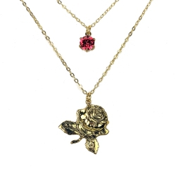 項鍊以富層次感的雙鍊設計,綴以圓形水晶及細膩刻畫的玫瑰花墜飾作撘配,