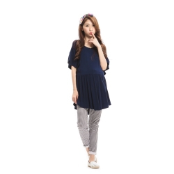 MAMAGIRL 浪漫荷葉彈力哺乳上衣(深藍)-MSN006