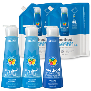 Method洗衣精不同於一般大罐包裝,而以小巧玲瓏的姿態出現。高濃縮的植物天然配方取代了一般高含水量的洗衣精,同時也縮減運費,儲藏空間,省塑料,省原油,省能源,還有減碳。