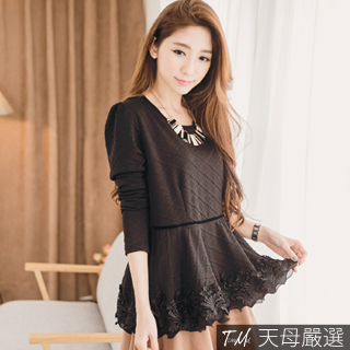 momo購物台,momo購物網:【天母嚴選】菱格壓紋蕾絲緹花傘擺上衣(共二色)