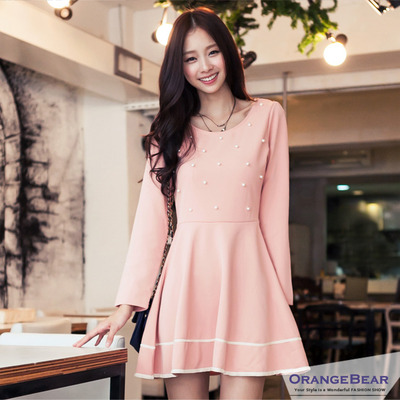 服裝推薦OB嚴選-0909新品 小公主風~手縫珍珠圓領A-line連身洋裝-2色