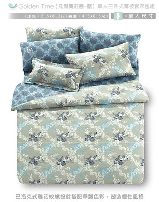 cp值超高的momo購物2【GOLDEN-TIME】凡爾賽莊園 -藍(單人三件式薄被套床包組)-學英文