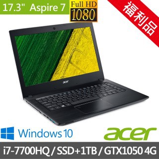 找超久的終於讓我找到活動限時購物優惠>【Acer 宏碁】福利品 A717-71G-7211 17.3吋筆電-黑(i7-7700HQ-4G-128G SSD+1TB-GTX1050Ti-Win10)