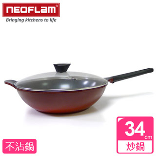 【熱門商品】【韓國NEOFLAM】34cm陶瓷不沾炒鍋+玻璃鍋蓋(Mitra系列)-刷卡限時購物回饋