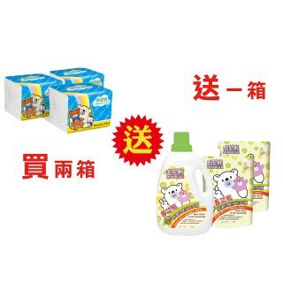 【限時活動】【Benibear 邦尼熊】抽式柔拭紙巾300抽x72包-箱x2(2+1送邦尼熊洗衣精-5件組)-本日刷卡購物優惠